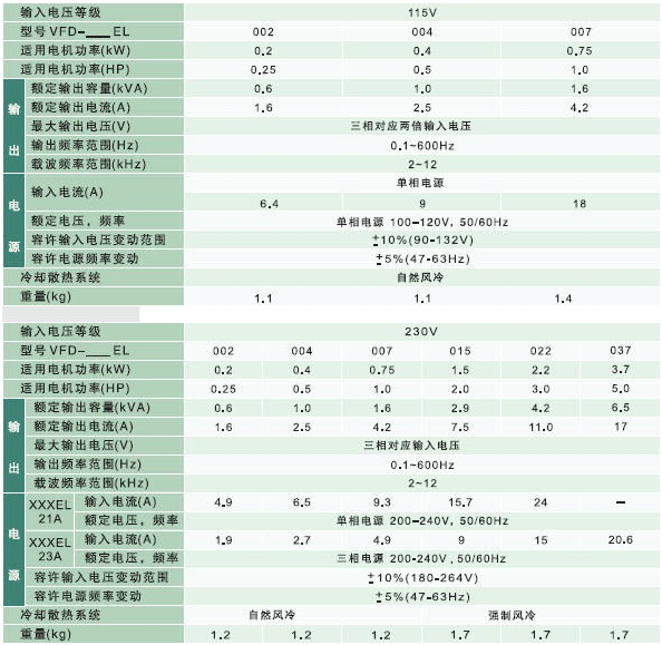 臺達變頻器VFD-EL系列